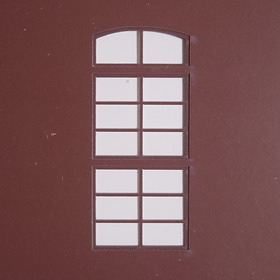 | 下窓に、雪対策の板が入っているのは、少し残念ですが・・・ 窓上のレンガアーチと、その曲線に沿って上部にRを設けた窓は、 特に秀逸に感じます。 ですので、模型化にあたっては、是非とも、このR窓を再現しなければなりません。 |