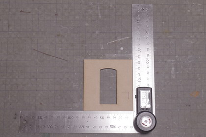 | ところで、この切り抜き品は、直角が僅かに狂っています。 デジタルプロトラクターで測ると、90.3° くらい それで、表裏を逆にして貼り合わせることはできません。 この原因は、レーザーカッターのXYステージ、そのものの直角が狂っているためと思われます。 |