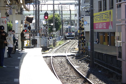 | 常磐線・金町駅で降りて京成金町駅から。 写真は、京成金町駅に入線する電車。 常磐線沿線に長年住んでいますが、この線に乗るのは初めてかも。 京成金町~京成高砂と来て、京成曳舟駅で下車。 |