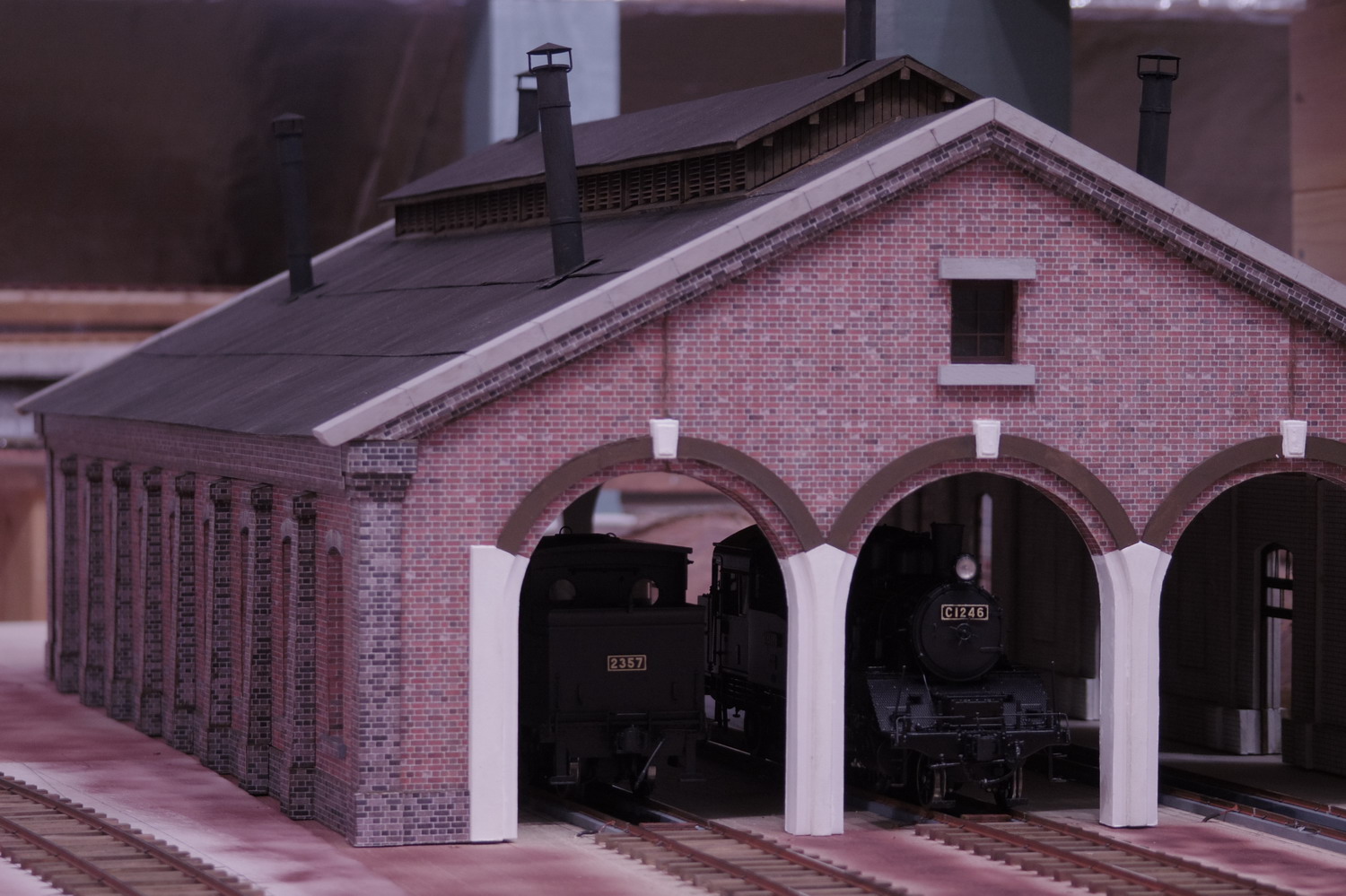 | 屋根裏部屋に、OJゲージのレイアウトを建設中です・・・ 2357(B6) C1246(C12) (musashino-model) Engine shed (scratchbuild. 1/45 scale) |
