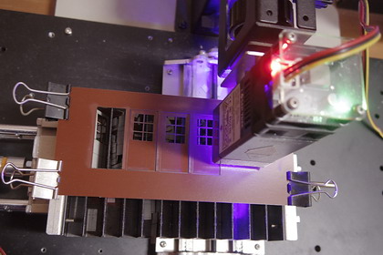 | 引き戸をレーザーカットしているところ。 |