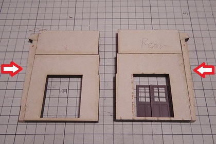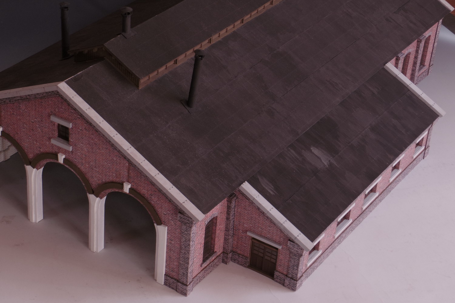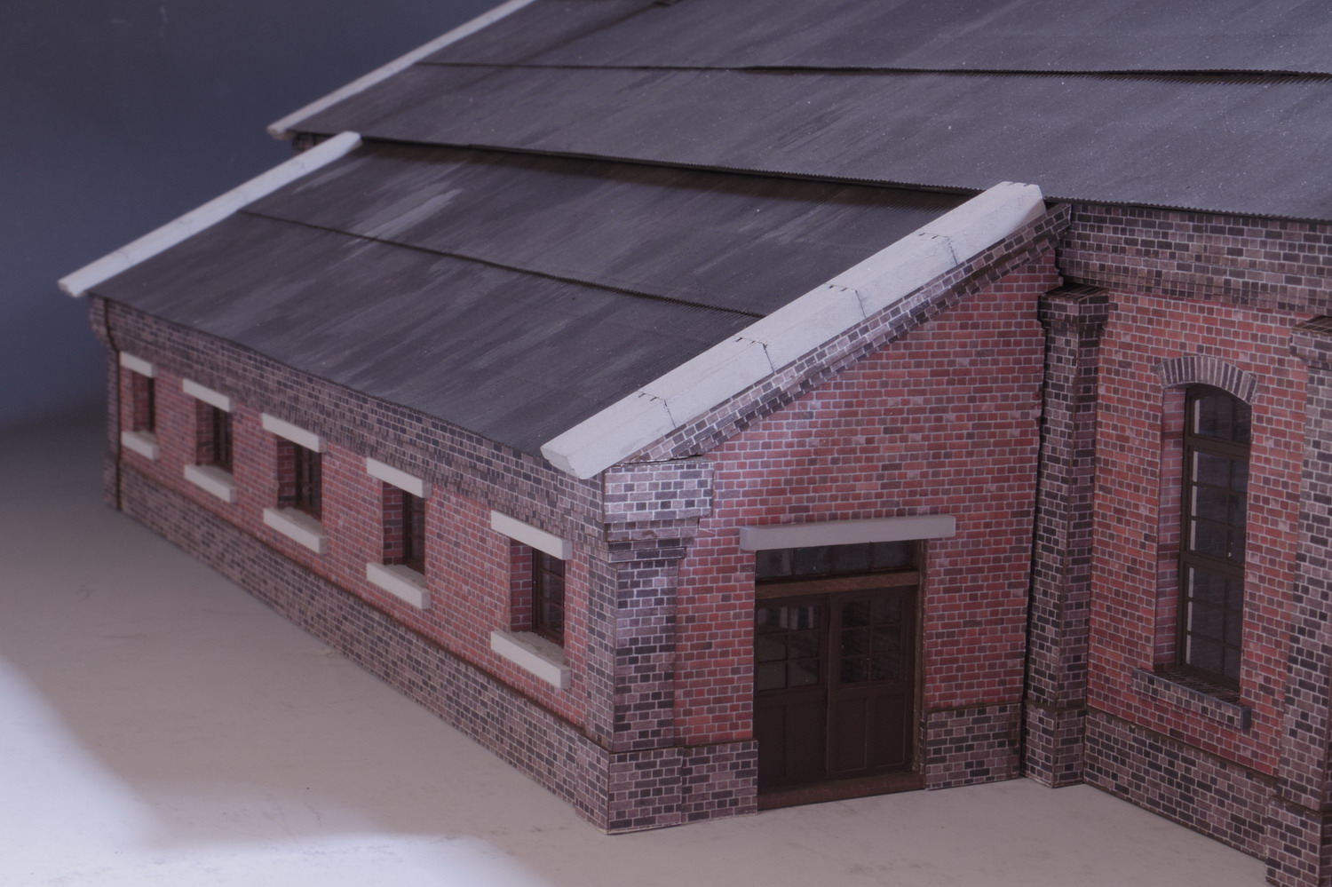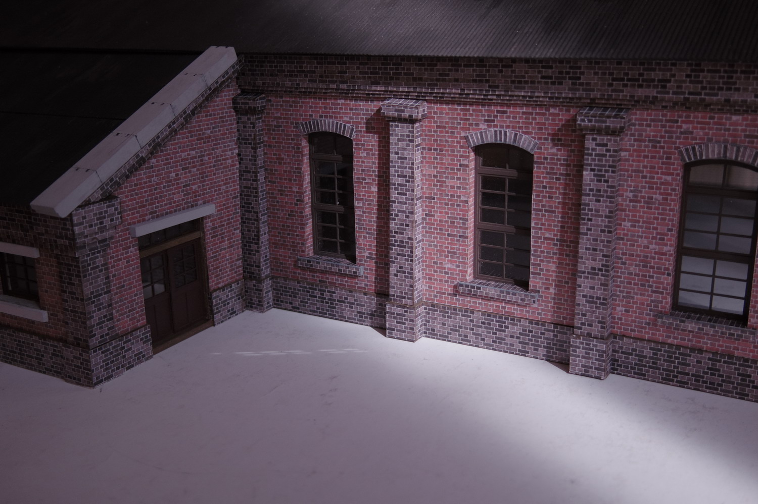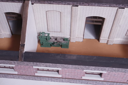 | 技工場表側。 技工場の妻板は、機関庫側柱に密着させなければならないので、 前述の工作法を採りました。 |