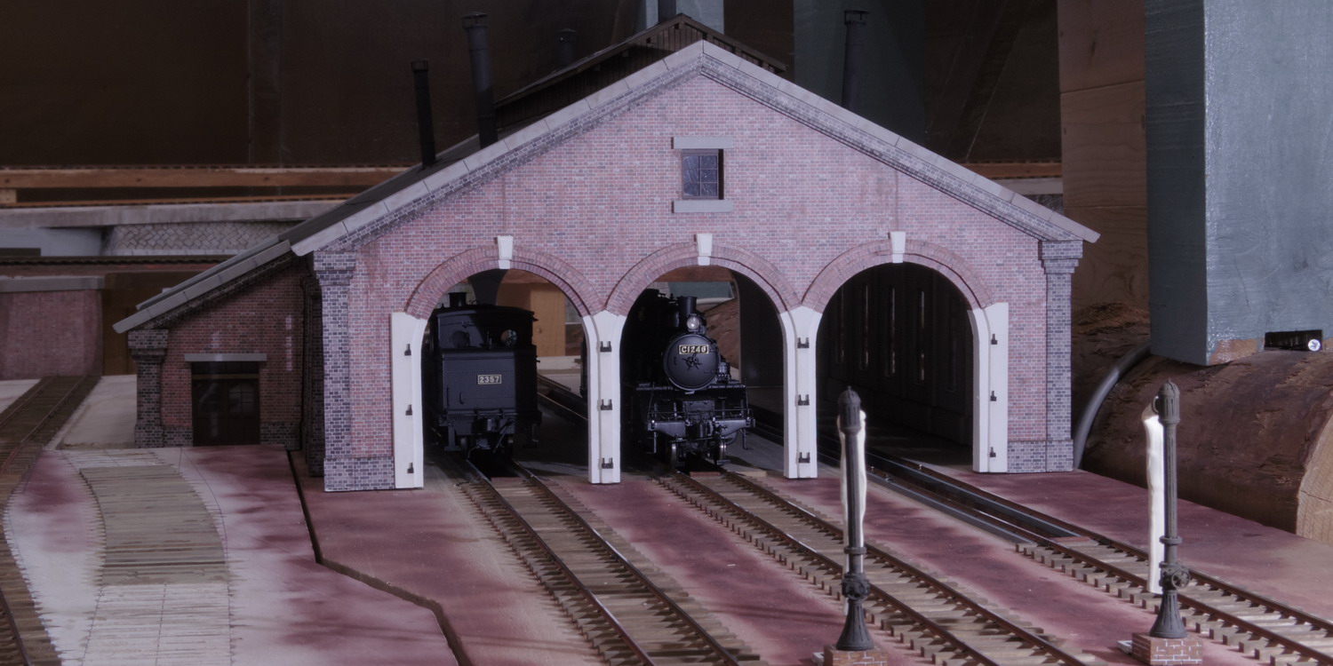 | 屋根裏部屋に、OJゲージのレイアウトを建設中です・・・ 2357(B6) C1246(C12) (musashino-model) Engine shed (scratchbuild. 1/45 scale) |