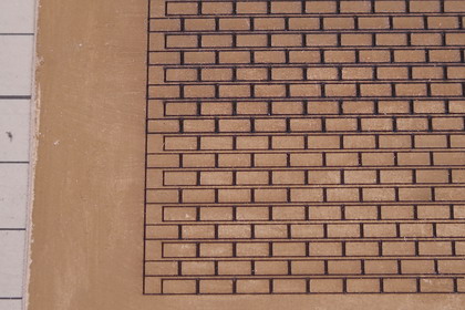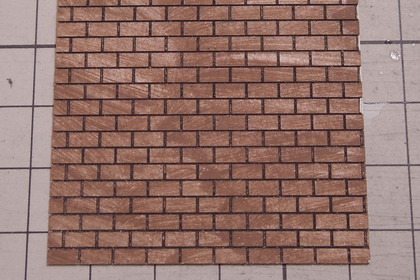 | レンガ厚紙の貼り付けを終えたところ。 |
