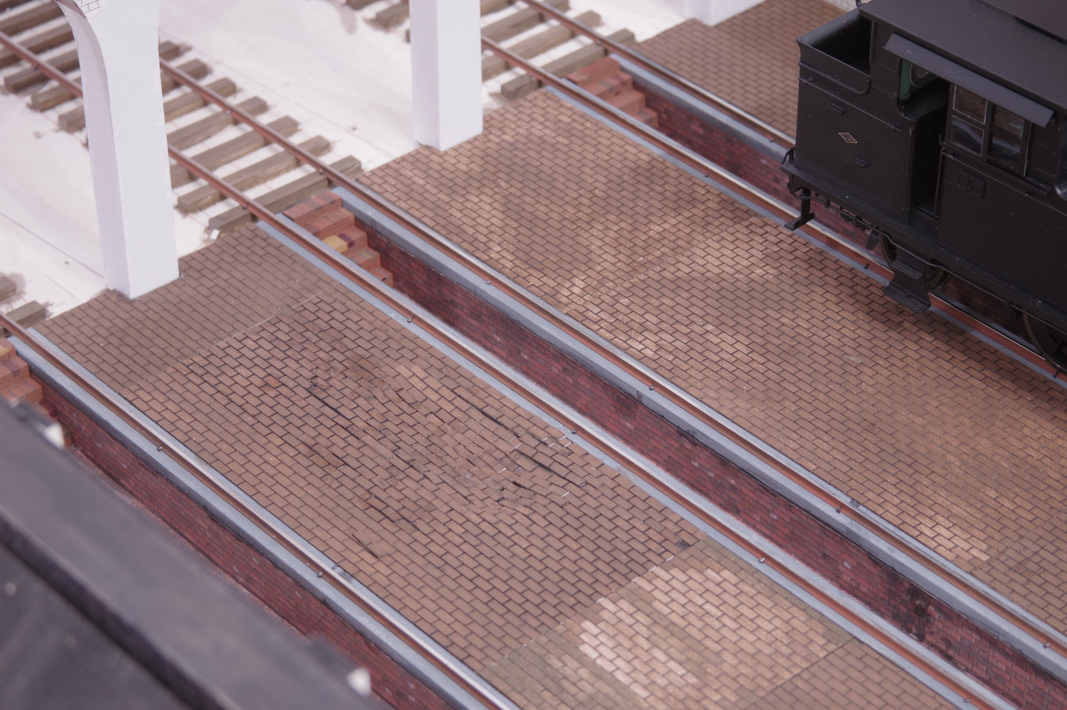 | レンガピットも相まって、 レンガ庫のたたずまい・温度感を感じられるようになってきました。 OJゲージには、それ特有といってもよい表現力が備わっているように思います。 |