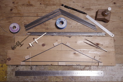 | 先週、切り出した鉄材を、治具を使ってトラス枠に仕立てているところ。(再掲) |