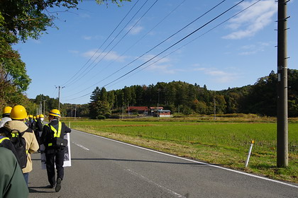 | 桃内駅に集合して、受付を済ませた後、見学地まで担当者の案内で歩行・・・ |