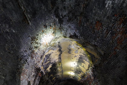 | 天井には、蒸機時代の煤煙の痕跡らしきものが残っています。 |