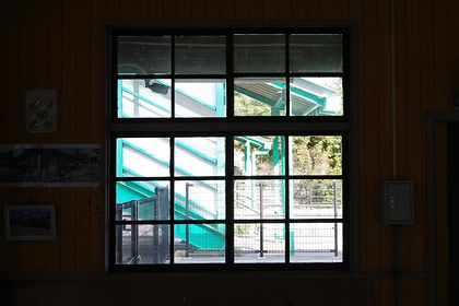 | こちらは上の窓が、十字に分割されています。 待合室、線路側。 |