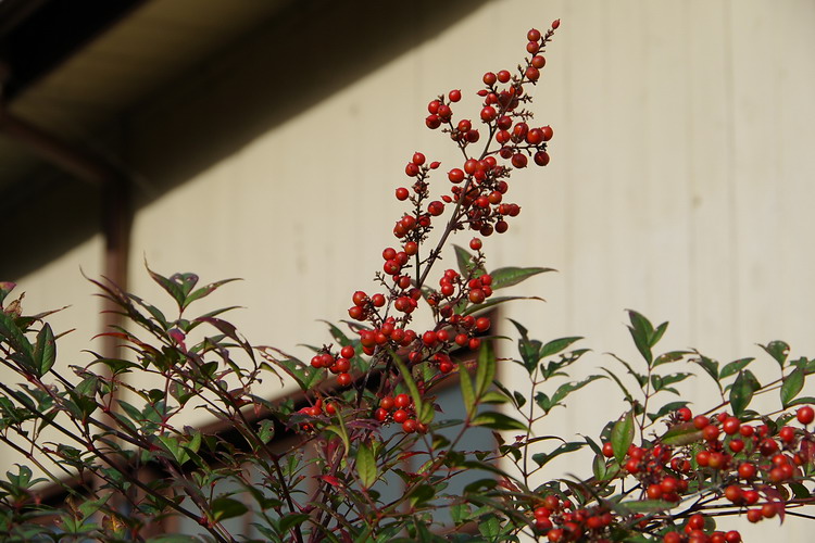 | ナンテンが、傾き始めた陽に映える・・・ |