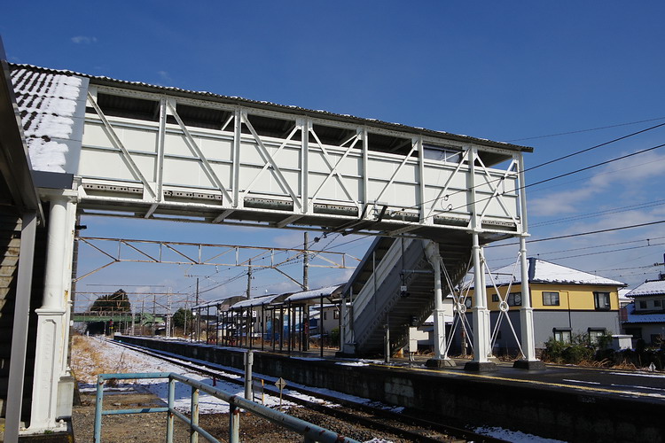 | 鶴田駅に到着。古風な跨線橋を見学します。 以前にも訪れていますが、その時はあまり詳しく見れなかったので改めて・・・ |