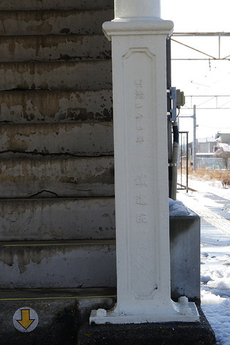 | 明治四十四年 鐵道院 とあります。階段も元は木製だったと思われます。 なお、鶴田駅の開業は明治35年ということです。 |